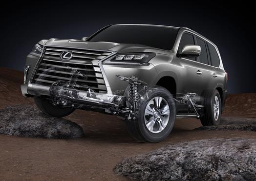 The LX 570 continues with a body-on-frame structure, features a Torsen limited-slip locking centre differential which provides full-time four-wheel drive, splitting torque 40:60 under normal driving conditions. The differential responds on the move to changing conditions, automatically adjusting the torque distribution as necessary. Off-road, the driver can lock the centre differential.
