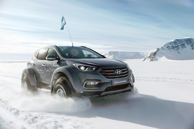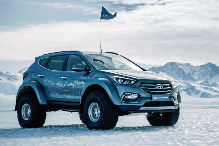 A modified Hyundai Santa Fe makes history as the first passenger vehicle to cross Antarctica.