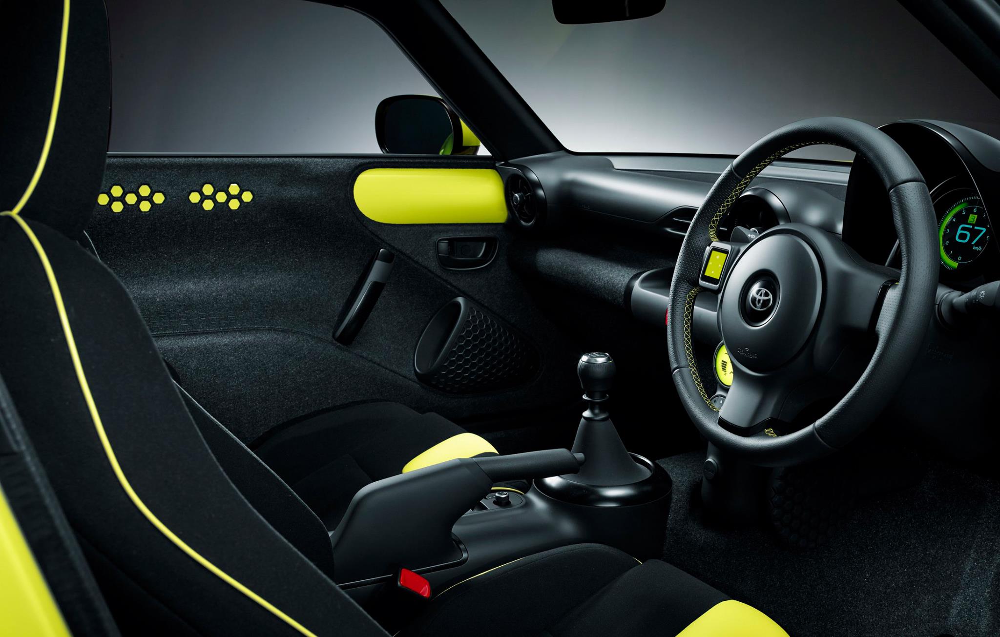 First, a manual transmission – definitely a 6-speed –  and there’s no mention of an automatic from Toyota.  Second…a handbrake parkbrake.  This car is going to spend a lot of time on motorkhanas and doing silly stuff like reverse j-turns so you need a handbrake for that sort of fun.  The hazard lights are unusually placed on the passenger side, reflecting how small this vehicle is if the driver can still reach them.