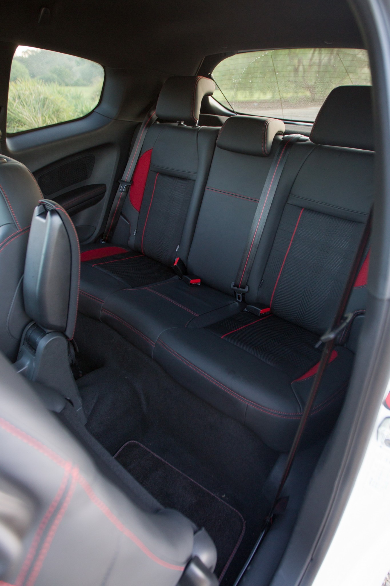 In the back there’s twin pockets on the back of the front seats. Access to the rear is by an easy-to-find and use lever, so no need for friends to be standing in the rain at night fiddling around with seats. Once in there is an impressive amount of legroom, and even the centre second row seat is usable, with more headroom than some larger sedans. The rear does feel a little enclosed though, but it is comfortable.  There are clothes hangers either side, too.