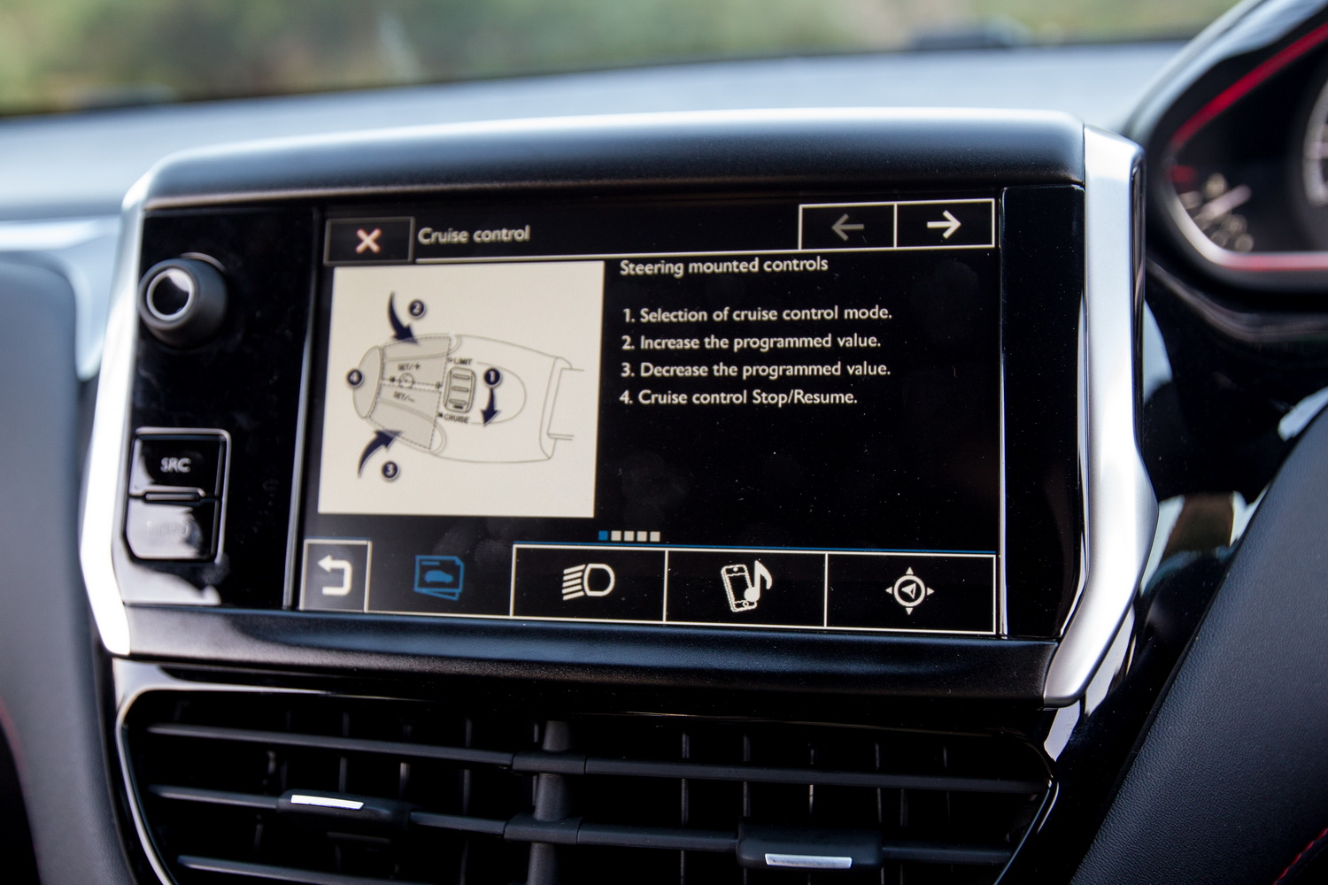 On the negative side the heat/cool controls are pointlessly fiddly, as is the cruise control. The instrument panel is further away from the steering wheel than is the norm, and as a result is sensitive to being obscured by the wheel. I did not find this a problem; others commented on it. There’s three little buttons on the panel which are too far away to be easy to reach.