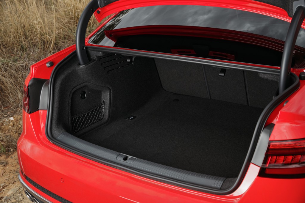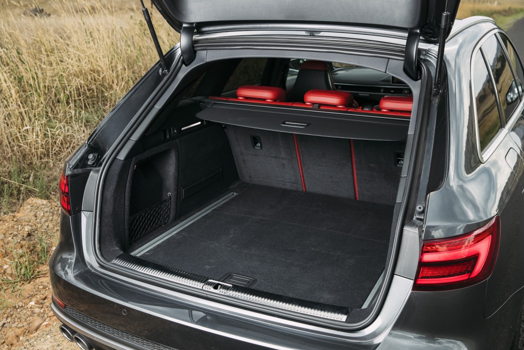 Over in the boot, and the S4 Sedan offers 480 litres of storage space, the opening is nice and wide and there’s only a low lip to make loading and unloading easy. The rear seats don’t fold down and there’s no through loading. The S4 Avant is the more practical of the two, as you would imagine. It offers 505 litres of space with the back seats in place, which grows to 1510 litres with the back seats folded down. Those back seats are 60:40 split, but you can cost-option a 40:20:40 split with levers in the boot to make dropping the seats easy. Like other A4 models, the S4 Avant offers a powered tailgate and you need only kick under the rear bumper to get the boot to either open or close.