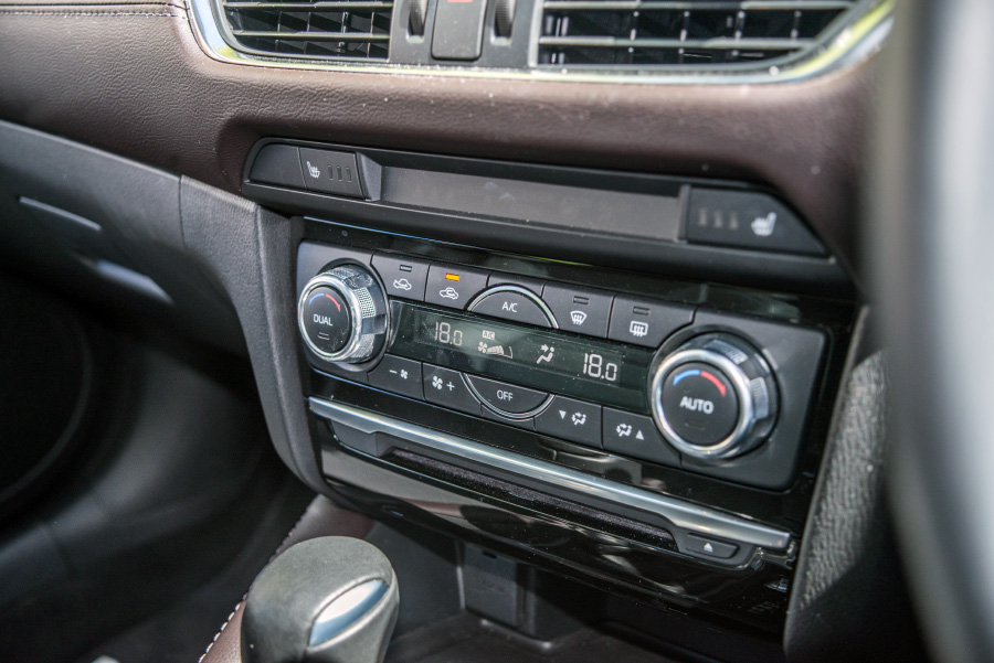 The Mazda6 GT gets a nice leather appointed interior which elevates the feel inside the cabin. It’s not plush, but certainly feels refined. The substance of the steering wheel feels firm and ‘right’ in the hands and the heated electrically adjustable front seats with memory function can be moved into a comfortable seating position.
