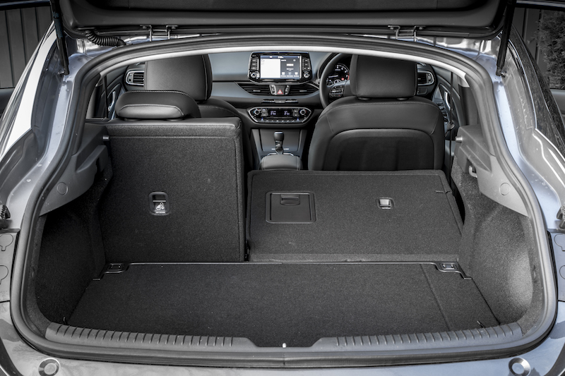 Vents and reading lights are provided in the rear of the Fastback. But it’s not all great for the people using them. The sloping roof robs headroom significantly for adults, though legroom is as adequate as in the i30 hatch. But if you’ve small kids, you’ll be grateful for the Fastback’s bigger boot: 450 litres (with space saver spare) versus 395 for the hatch.