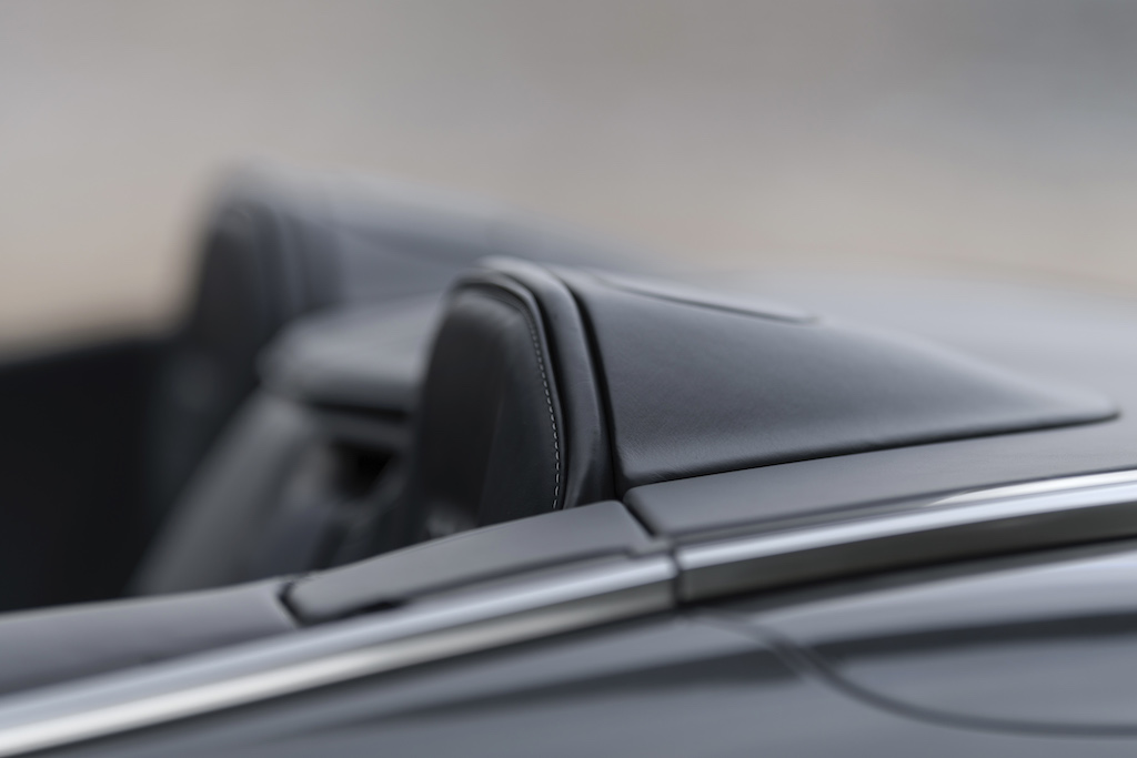 The seats adjust electrically but their narrow, curved backrest might roll your shoulders forward uncomfortably. Important if you want to use your roadster on a chilly day is that they’re heated, and that there’s little high-speed turbulence when all four windows are up, and especially when the wind-block net is in place.